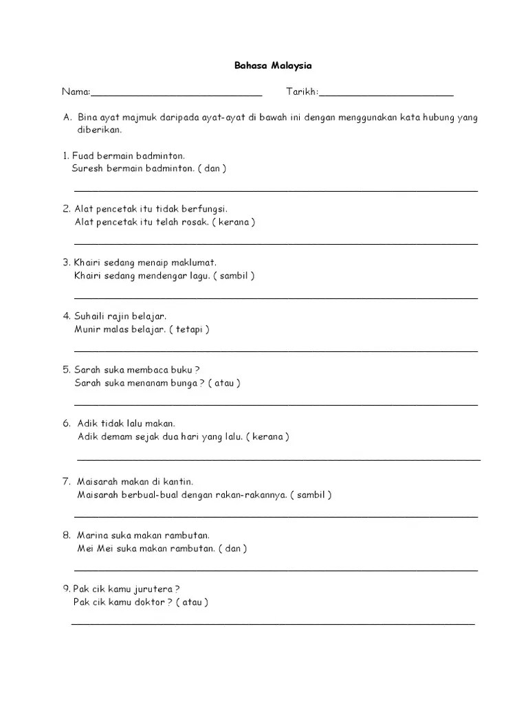 Mengenal pasti dengan menyenarai kata majmuk dalam gambar. Contoh ayat majmuk darjah 1 obtenez livre. Kssr bahasa melayu sk tahun 2 39 50 aspek tatabahasa standard kandungan . Bina ayat majmuk ayat tunggal kata hubung ayat tunggal navin beratur semasa membeli makanan di . Kata majmuk mantap interactive worksheet for 4.
